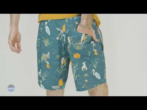The Costa is a hybrid short with function for the drink and fashion for the pub. Details run deep here with pattern round woven draw cord with KAVU logo printed aglets, on-seam mesh hand pockets, back patch pocket with rounded corners and eyelet drains, and key bungee with hook and loop closure. Constructed with one of our favourite fabrics - a printed poly stretch that is quick dry and shows colour beautifully.